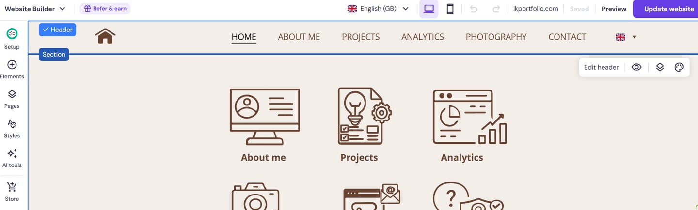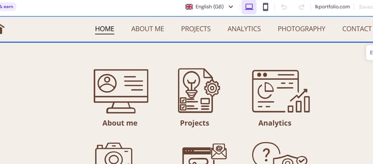 My first website I ever created www.lkportfolio.com. Since then, I have already changed the domain provider and redesigned the whole website. It has been a great learning journey for me.