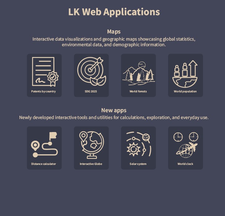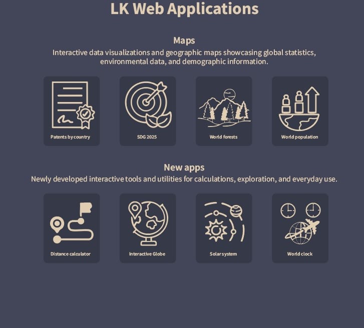 Apps, Maps, Games - https://lkwebapps.com. My most challenging project yet! I'd never done any programming before but I had so much fun, and this is just the beginning. More apps coming every month.