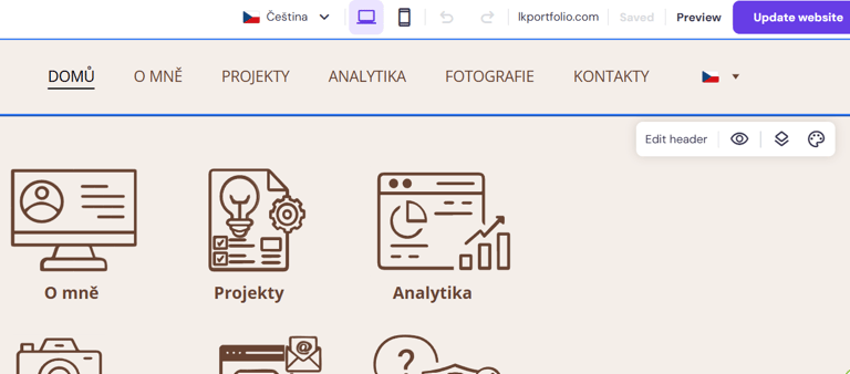 Můj první web, který jsem kdy vytvořil www.lkportfolio.com. Od té doby jsem změnil poskytovatele domény a kompletně přepracoval celý web. Byla to pro mě skvělá zkušenost.