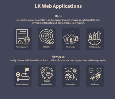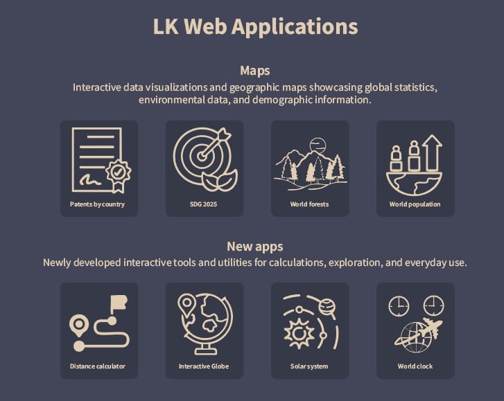 Apps, Maps, Games - https://lkwebapps.com. My most challenging project yet! I'd never done any programming before but I had so much fun, and this is just the beginning. More apps coming every month.